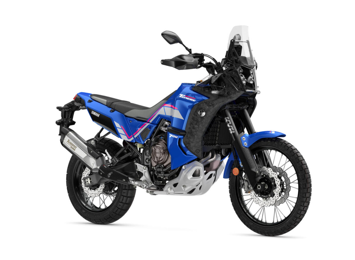Inspired by the machines that took six Dakar victories in the hands of legendary French rider Stéphane Peterhansel, the Ténéré 700 World Rally features exclusive factory racing colours – and its high specification includes a lightweight Akrapovic slip-on muffler, as well as special long-travel forks, wheels and flat rally seat finished in black.