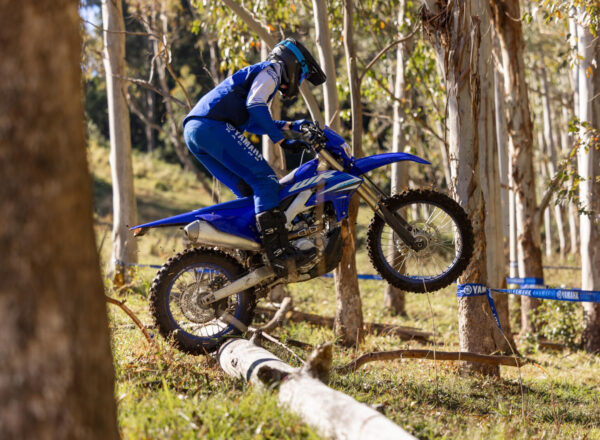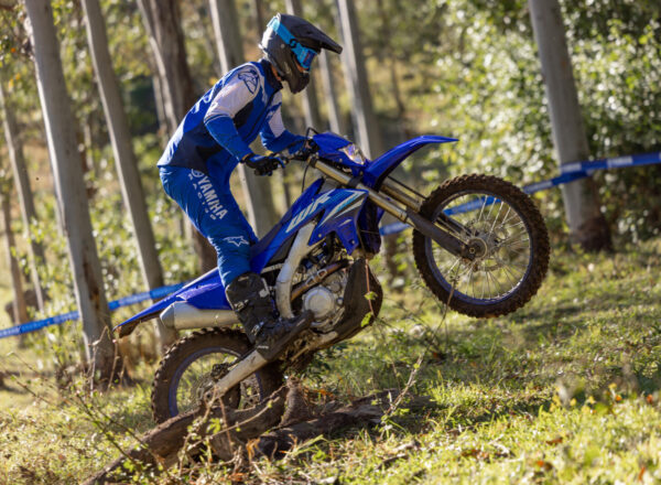 Equipped with a lightweight aluminium chassis, the WR450F feels more compact and agile than ever. Super-slim seamless bodywork and a flatter seat make weight shifting quicker and easier for the highest level of manoeuvrability – and the best-in-class KYB suspension is lowered by 10mm and runs revised settings for increased low speed cornering performance.