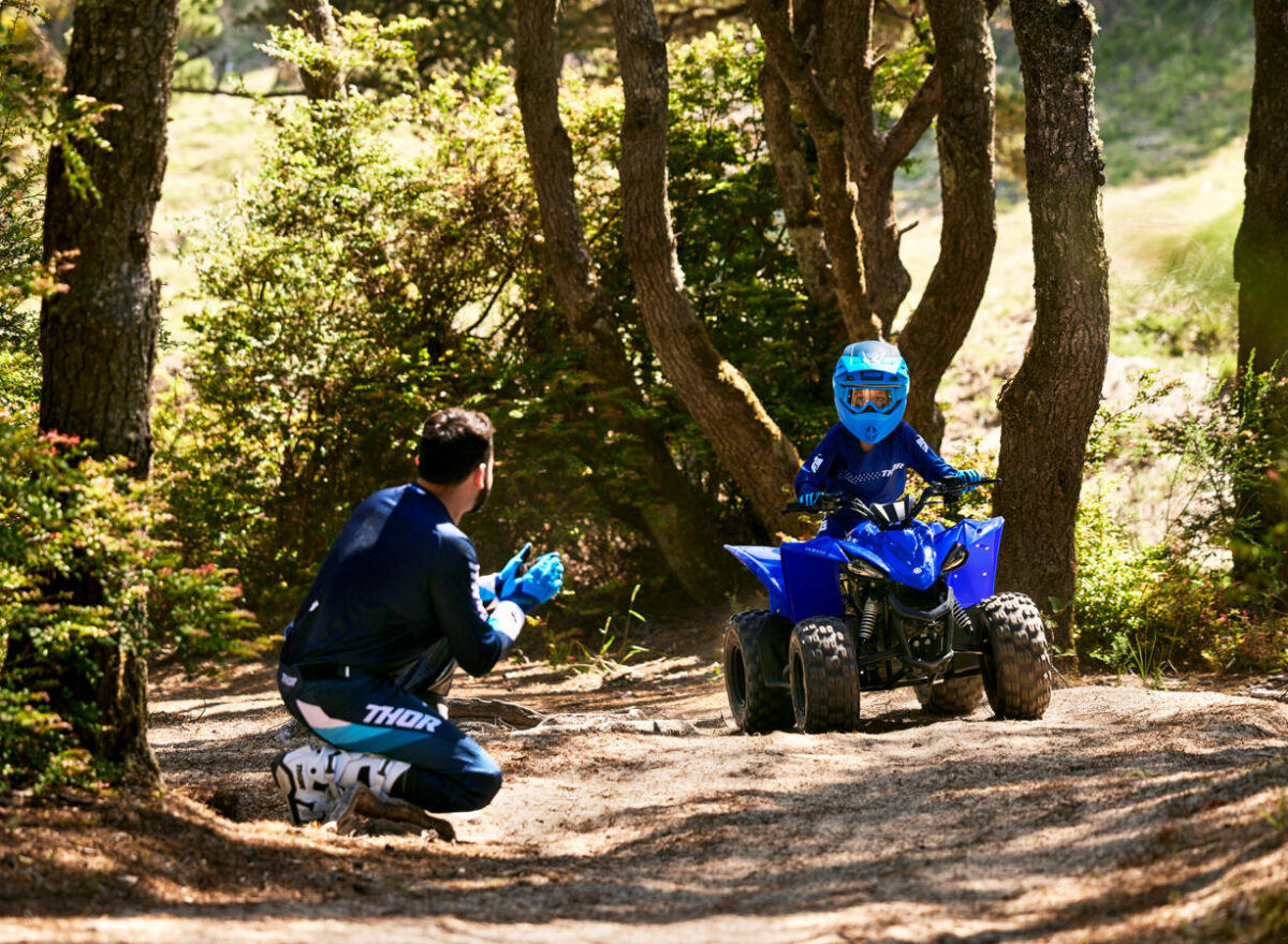 Safety comes first, and the YFZ50 has a range of features that give parents a high degree of control. Speed can be limited by the throttle screw and rev limiter switch – and a lanyard attached to a tether switch can cut the engine instantly.