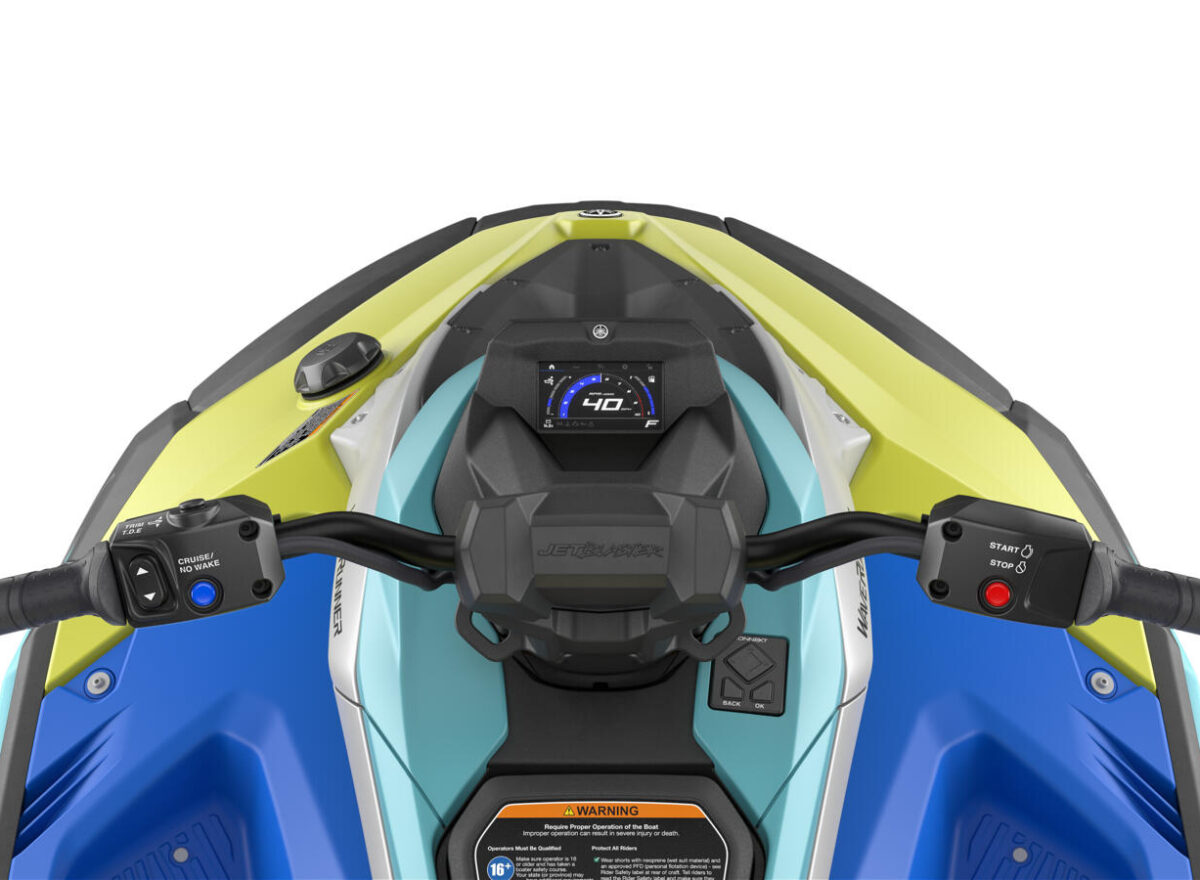 The JetBlaster PRO is the ideal choice for all-action fun. Featuring a top-quality engine, a great power-to-weight ratio, multi-function colour display and Yamaha’s revolutionary RiDE® system and T.D.E. for intuitive control, it guarantees thrill seekers exciting agility and user-friendly handling to quickly conquer the waves. And with the racing inspired colour scheme, which adds striking blue to the existing colour mix for a really stand out look plus sporty graphics, you’re sure to catch every eye.