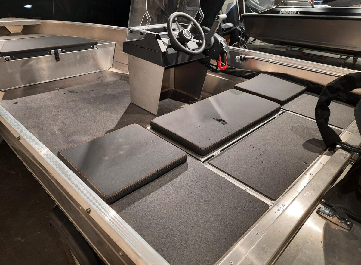 The Buster XSr is the king of small cabin boats, and adapts perfectly to its user’s needs. It is an agile and effortless boat to suit the young drivers, but serves perfectly as a commuting boat or as a fishing buddy. In the aft of Buster XSr there is plenty of space, and it can also be rowed from the bow. The front seat is generously sized, serving for example as a fishing platform. Regarding its size, Buster XSr has an excellent load carrying capabilities, safely carrying four people with full luggage all the way to the dock of the summer cabin. The deck layout is well thought out and provides a good amount of space to move around in. The stylish composite floor is durable against both weather and time. There is a space for the fuel tank and the battery, as well as lockable compartments in the aft and bow which you can lock with a separate lock to keep your thing safe. The uncompromising quality of Buster combined with the durable and carefree nature of the aluminium make this boat the most reliable accessory of every summer cabin.