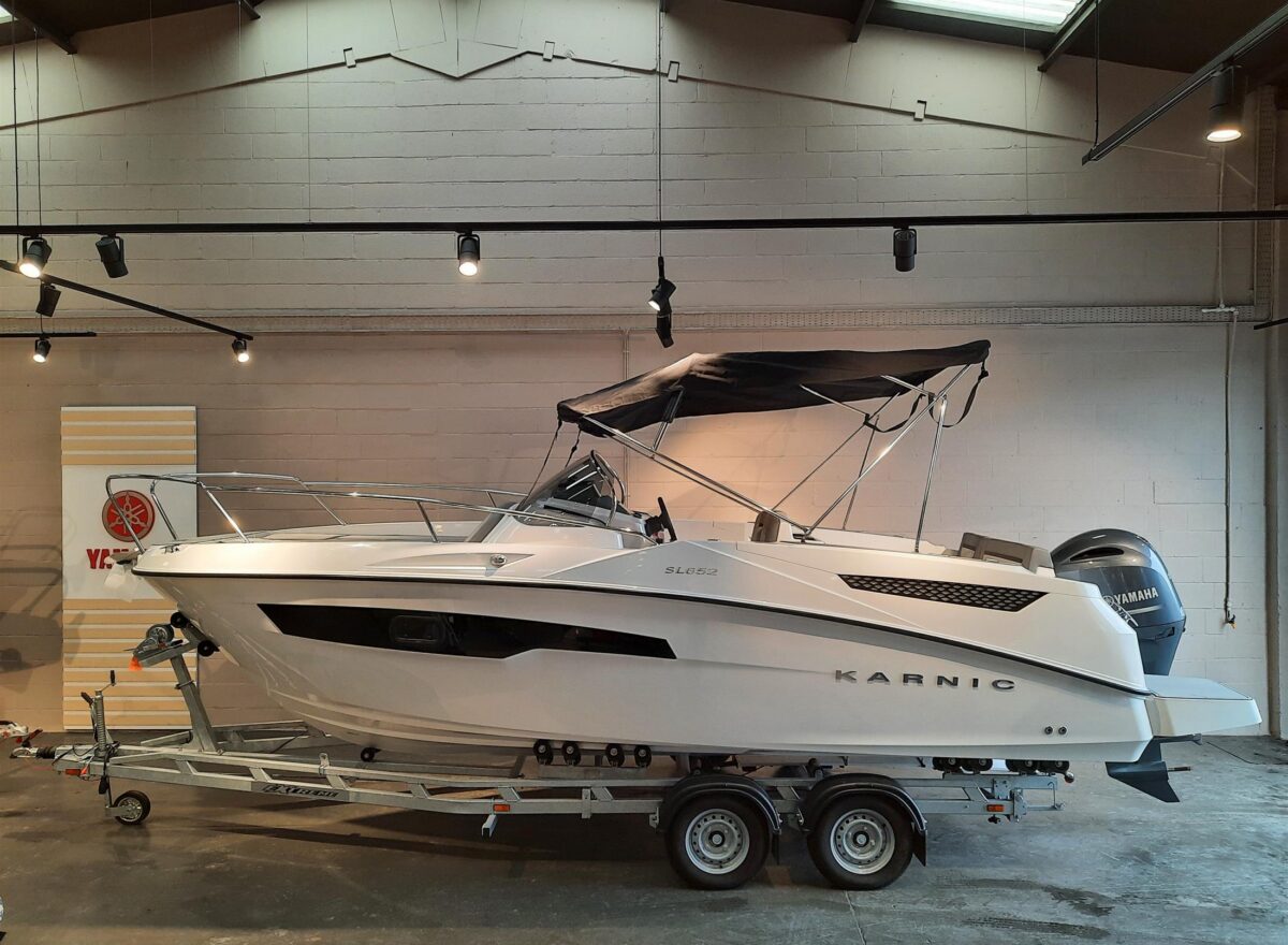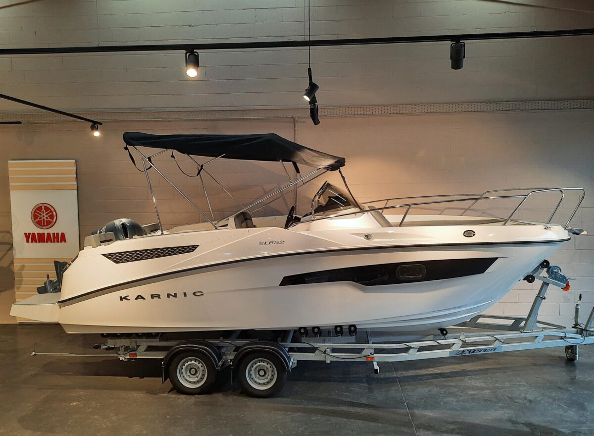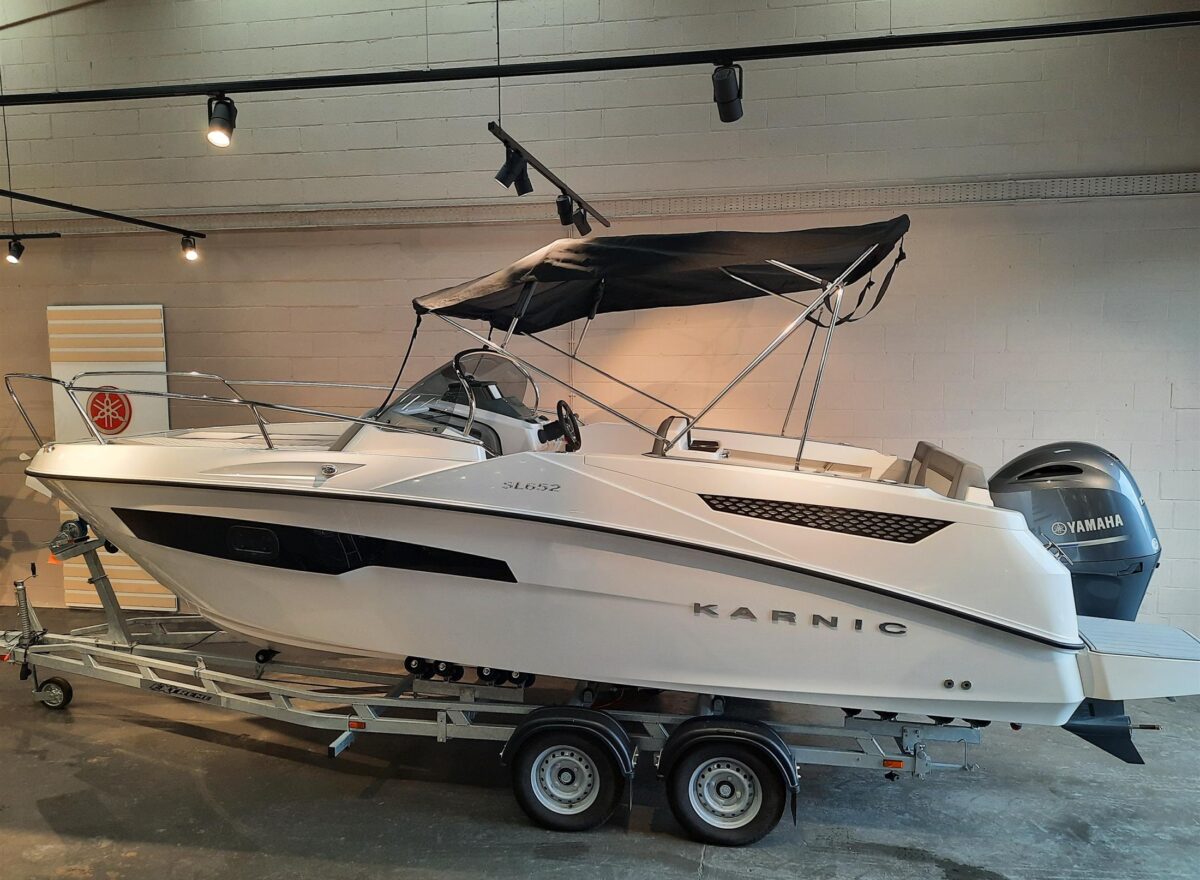 A superb opportunity to purchase a brand-new 2023 Karnic SL652 sundeck cuddy cabin boat, fitted with a new Yamaha F150 outboard (0 hours) and supplied with a new Extreme EXT2400 Super Roller Trailer. The SL652 is one of Karnic’s most versatile and best-selling models — offering a spacious walk-around layout, excellent seakeeping, and premium European build quality. Ideal for family cruising, watersports, fishing, and comfortable overnighting.