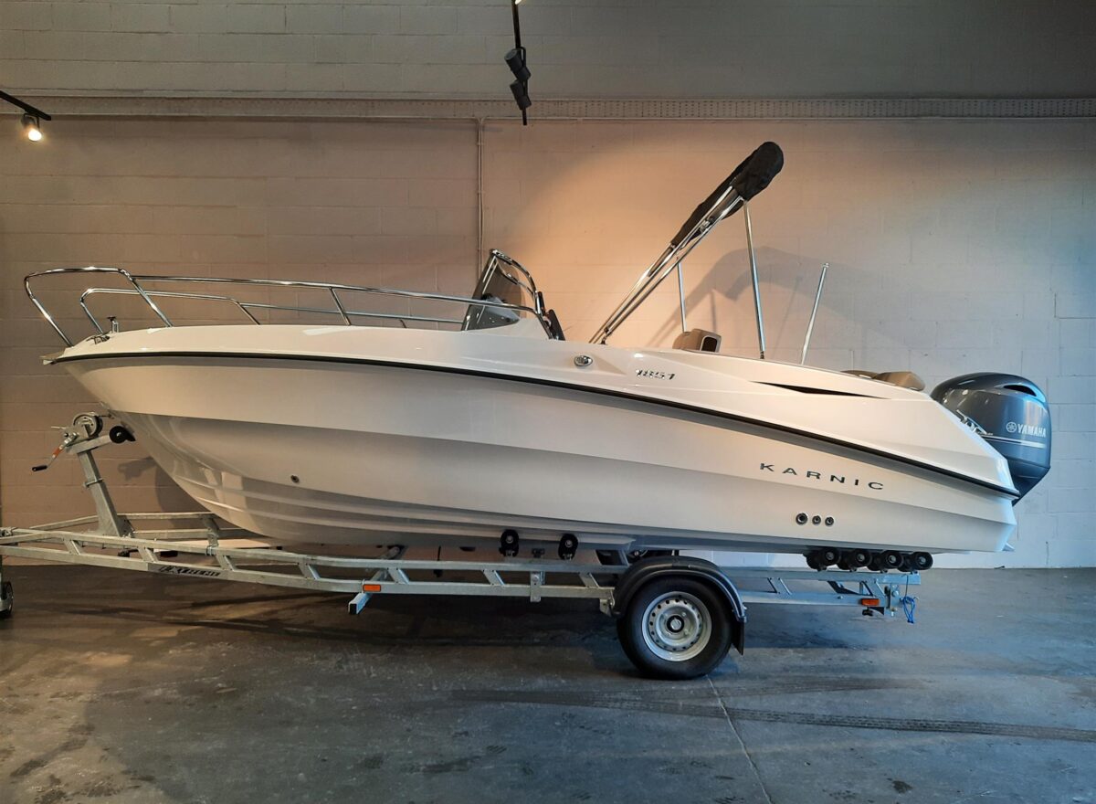 A fantastic opportunity to secure a brand-new 2024 Karnic 1851 MKII paired with a new Yamaha F115 outboard and a new Extreme EXT1500 Super Roller Trailer. This modern centre-console is renowned for its stability, performance, and clever use of space — perfect for coastal cruising, fishing, watersports, or relaxed family days out.
