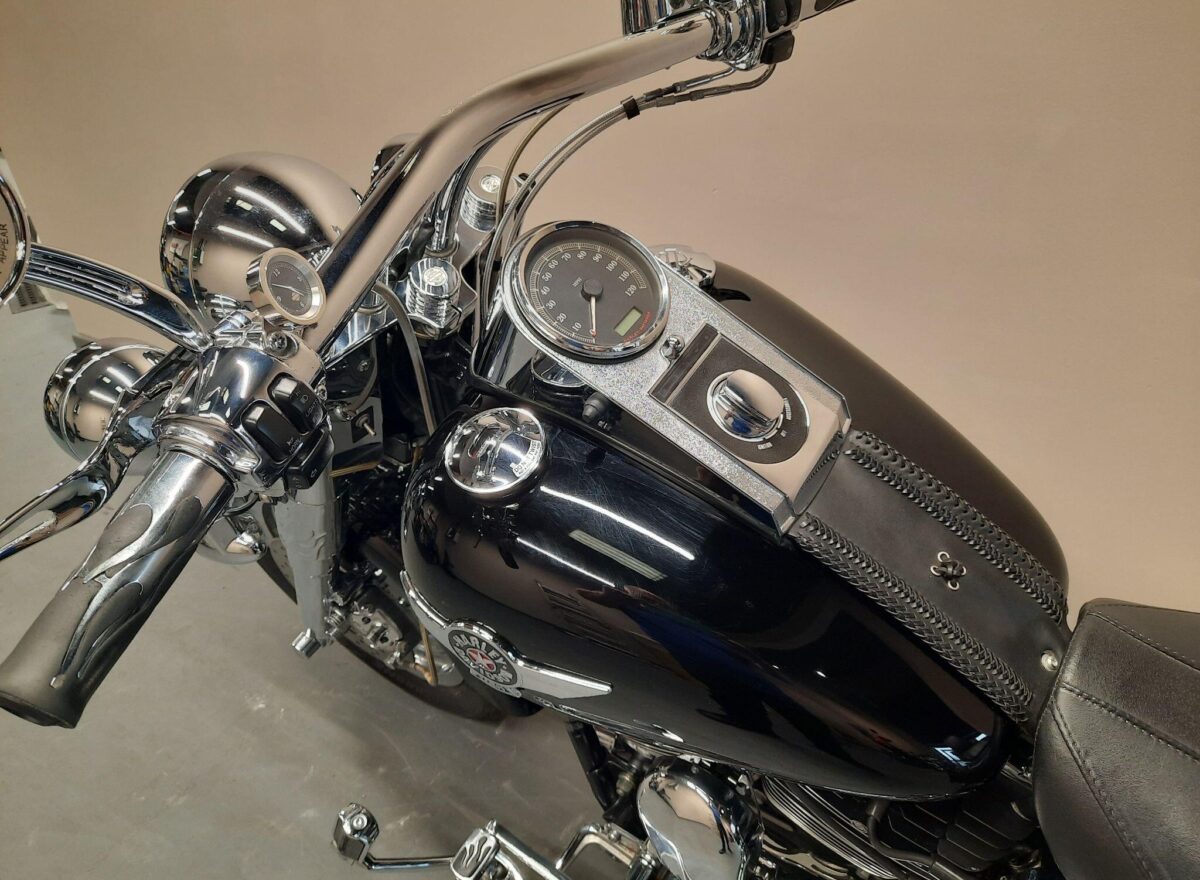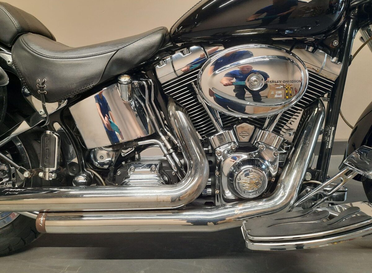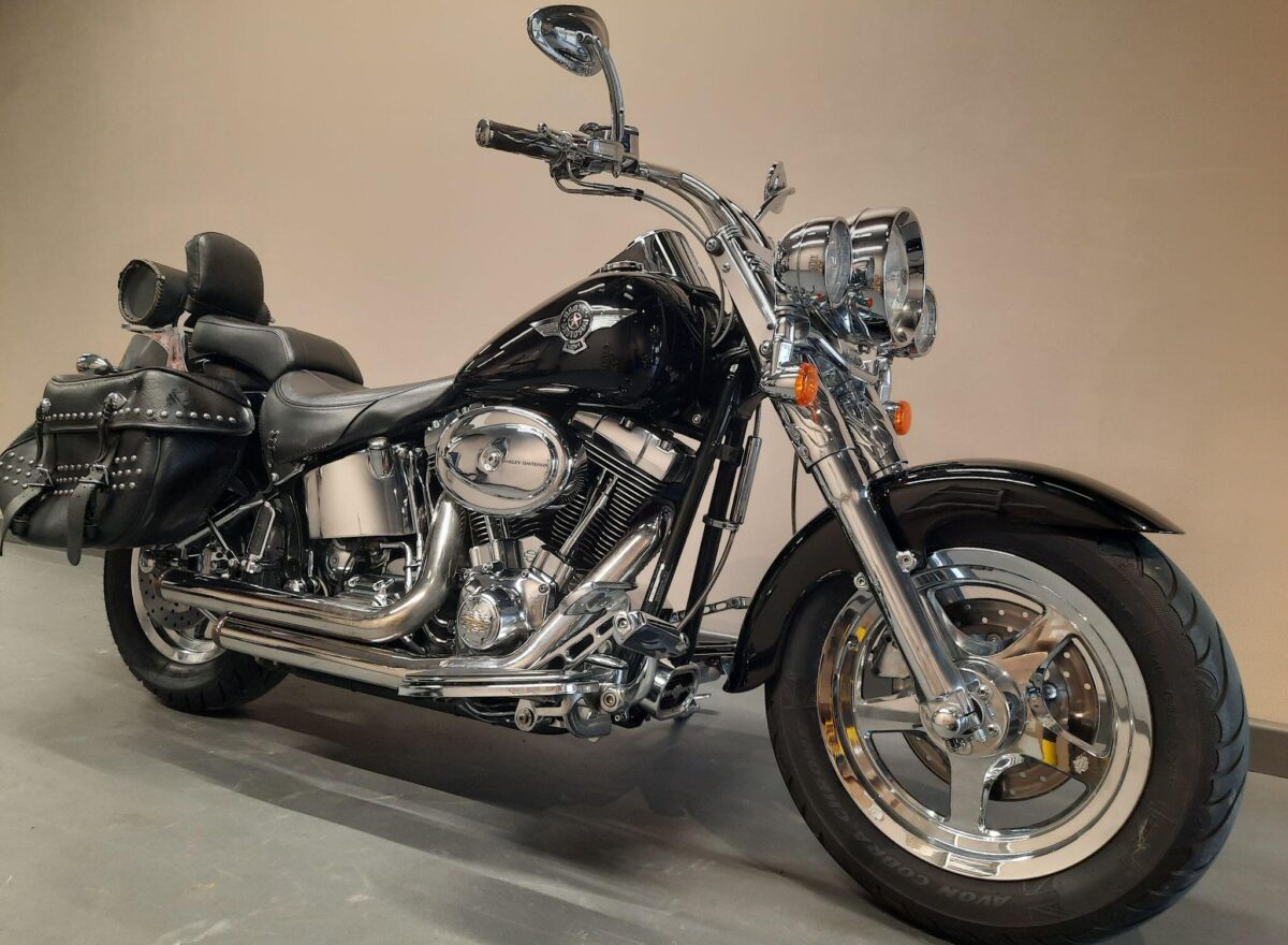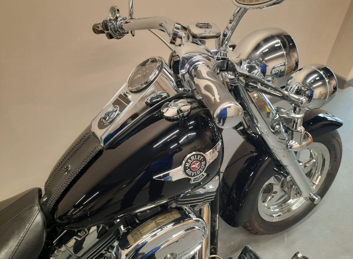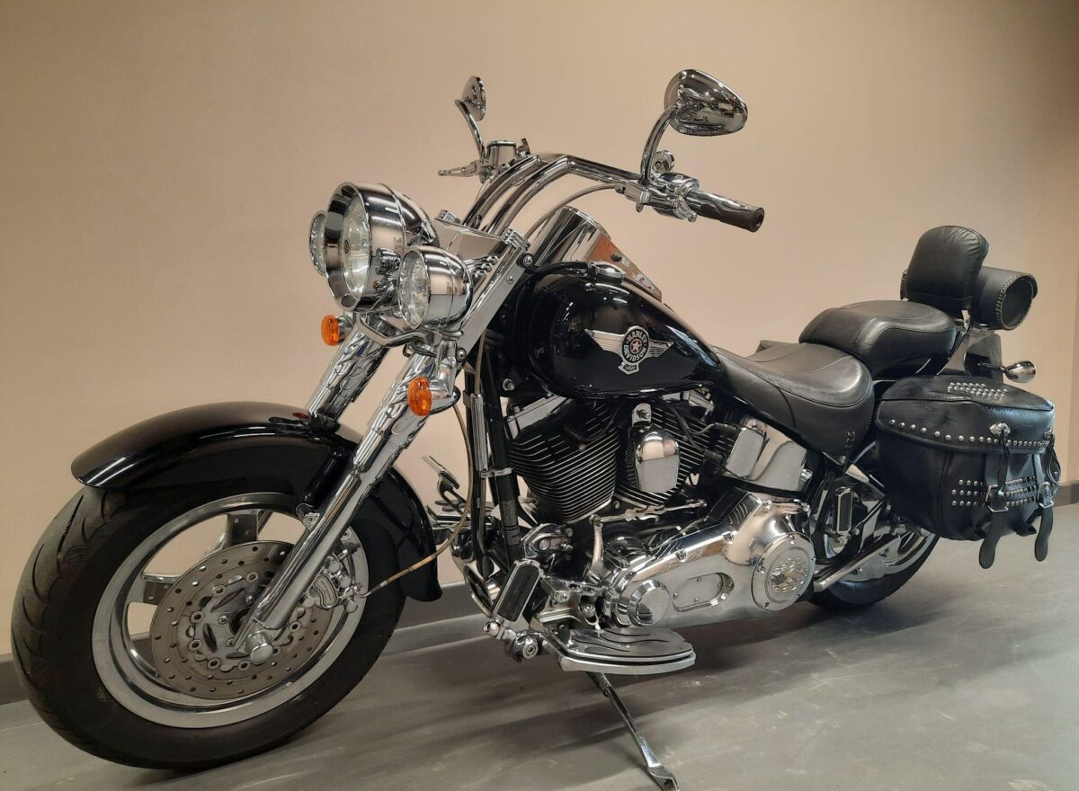 HARLEY DAVIDSON FLSTF FAT BOY 1450cc custom cruiser fitted with Rinehart Racing exhausts, K&N air filter, Carlini Design handlebars, chrome fork shrouds, front passing lamps, rider foot boards and cruising pegs, a leather tank bra, oil temperature gauge, leather saddle bags, sissy bar with pillion back rest pad and rear luggage carrier and a leather tool roll. Cherished plate K25 FAT included in sale. First registered overseas in 2005. First registered in UK in 2016. 4 UK owners. Low mileage. Very good condition. Part service history. Comes with 2 sets of keys and 2 Harley Davidson alarm fobs. Will be serviced and supplied with MOT and 3 months warranty. UK Nationwide Delivery available. Part exchange welcome. Whatsapp 07930 475012 or CALL US NOW 01244 289977…