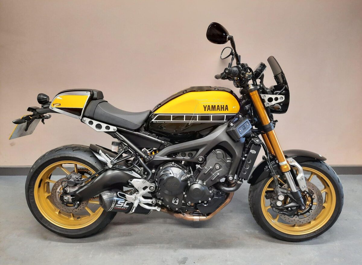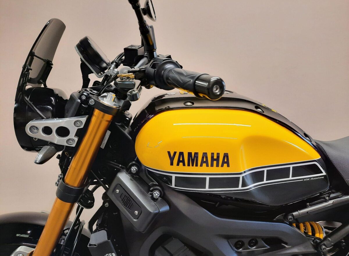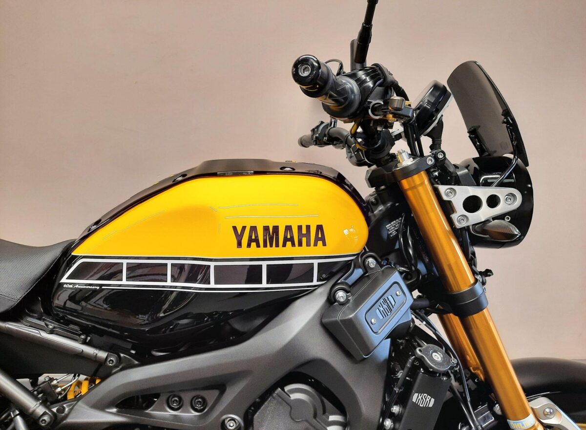 YAMAHA XSR900 60th Anniversary Limited Edition fitted with genuine Yamaha XSR dark tint fly screen, radiator protection guard, radiator side guards, colour matched seat cowl, tail tidy, carbon LED indicators all round, front axle protectors, adjustable levers, tank pad, R&G rear swing arm paddock stand bobbins and an after market exhaust with an SC Project decal. Features… exclusive 60th anniversary yellow and black speed block livery, two level seat, 850cc CP3 crossplane concept triple cylinder engine that provides powerful torque and incredible acceleration, Assist and Slipper Clutch, ABS, switchable 2 stage Traction Control System and D-MODE selectable engine map riding modes with YCC-T chip controlled ride by wire throttle. YISS factory immobiliser. 4 owner UK bike in excellent condition and with part Yamaha dealer service history. Comes with all 3 keys (including red immobiliser master key), owners manual and original indicators. Will be serviced and supplied with MOT and 3 months warranty. UK Nationwide Delivery and finance available. Part exchange welcome. Whatsapp 07930 475012 or CALL US NOW 01244 289977…