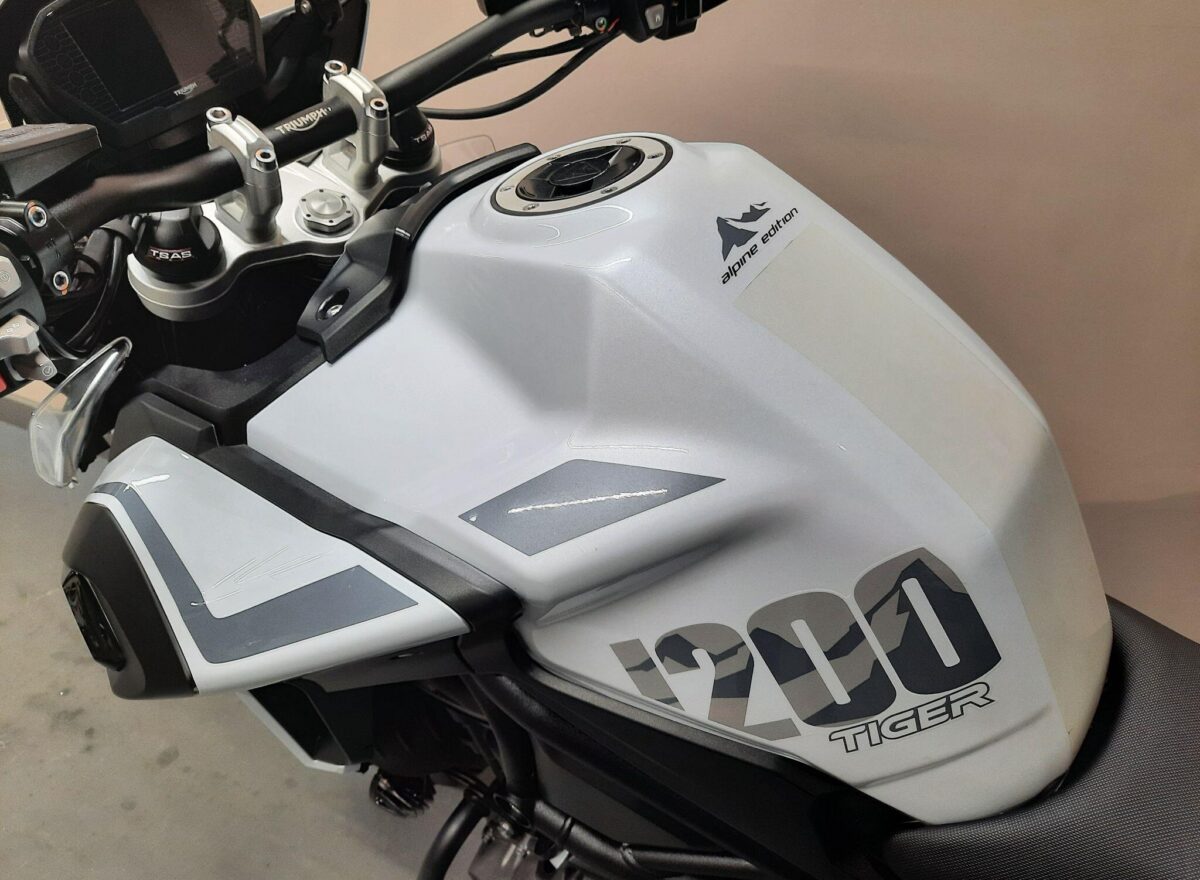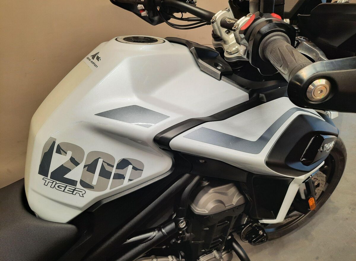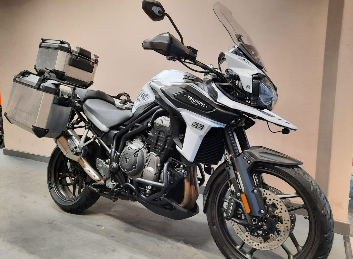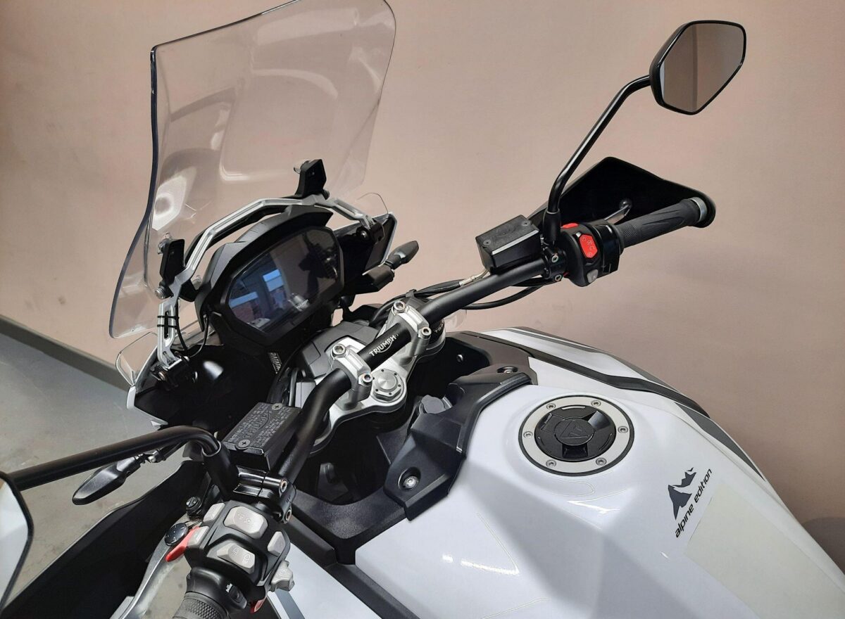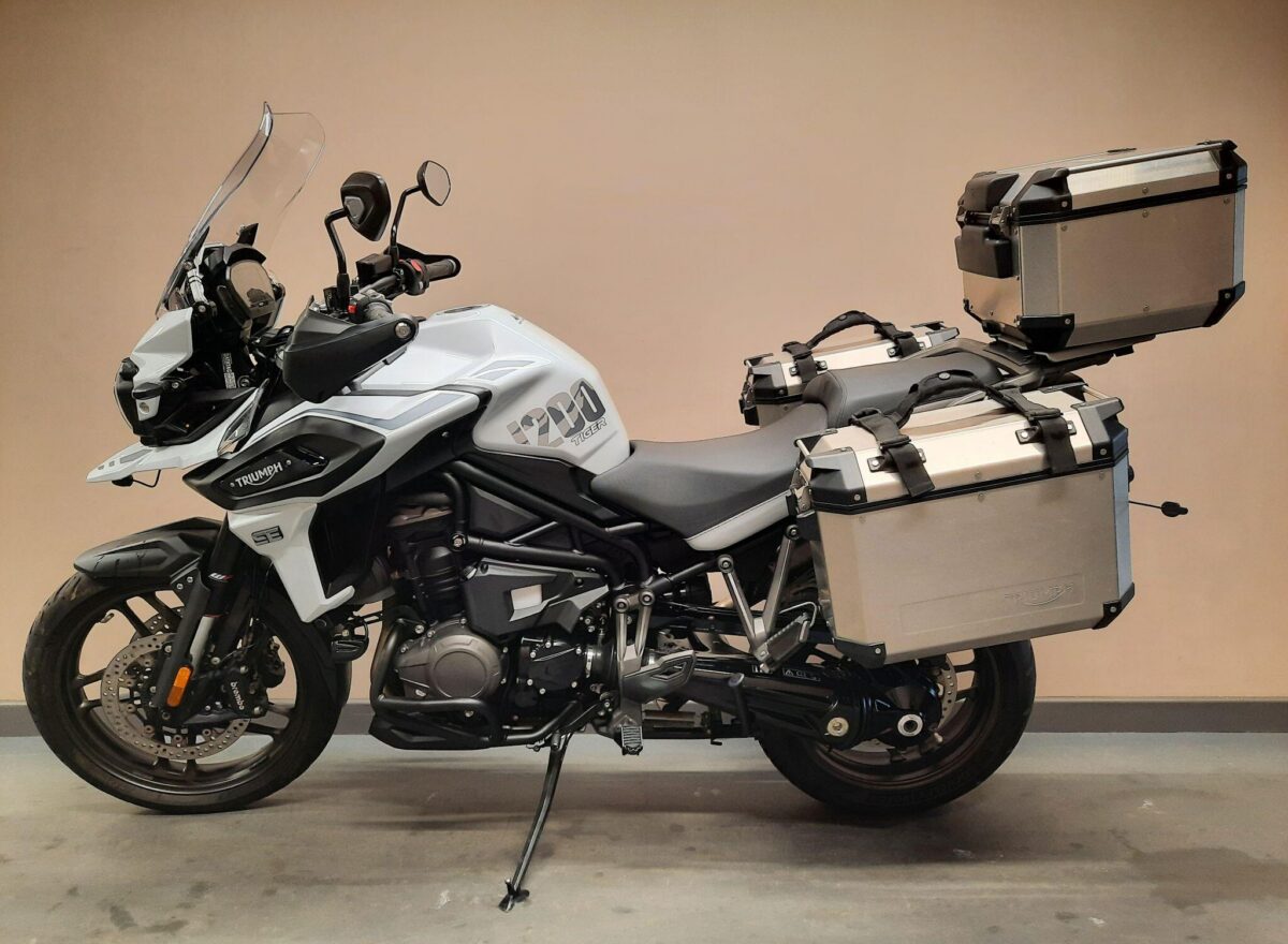 TRIUMPH TIGER 1200 ALPINE SE fitted with genuine Triumph aluminium top case and panniers. Special Edition Alpine model. Tiger 1200 Alpine Edition features all of the Tiger 1200 XR style and adventure capability, whilst bringing a higher standard of finish, including: Exclusive ‘Snowdonia White’ special edition paint scheme, ‘Alpine Edition’ graphics and Metallised ‘SE’ radiator badges. Based on the XRx model, the Tiger 1200 Alpine Edition adds even higher specification features with a Lightweight Arrow titanium silencer and Triumph Shift Assist for clutchless up- and down-shifts. Features… Shaft final drive. Full colour TFT display. Optimised Cornering ABS and Traction Control. 4 rider modes (Rain, Road, Off-Road, Sport). All LED lighting. High specification Triumph Semi-Active Suspension (TSAS). Triumph Shift Assist. Keyless ignition. Cruise control. Hill Hold. Electrically adjustable touring screen. Ride-by-wire throttle. Heated grips. Hand Guards. Main Stand. Three power sockets including a handy USB socket under the seat. One owner UK bike in very good condition and with full service history. Comes complete with 1 smart remote key, 2 mechanical back up keys, owners manual and service book. Will be serviced and supplied with MOT and 3 months warranty. UK Nationwide Delivery and finance available. Part exchange welcome. Whatsapp 07930 475012 or CALL US NOW 01244 289977…