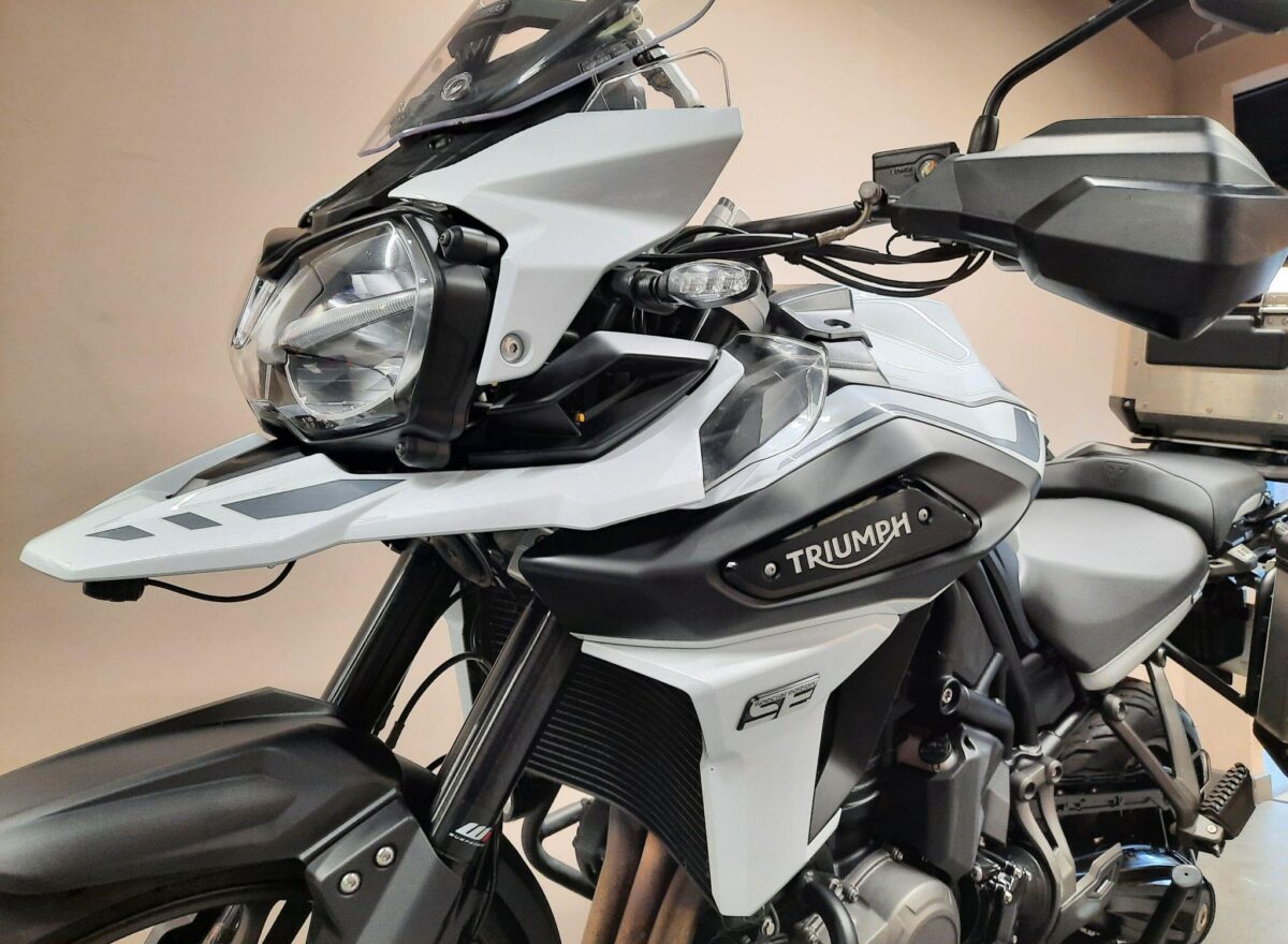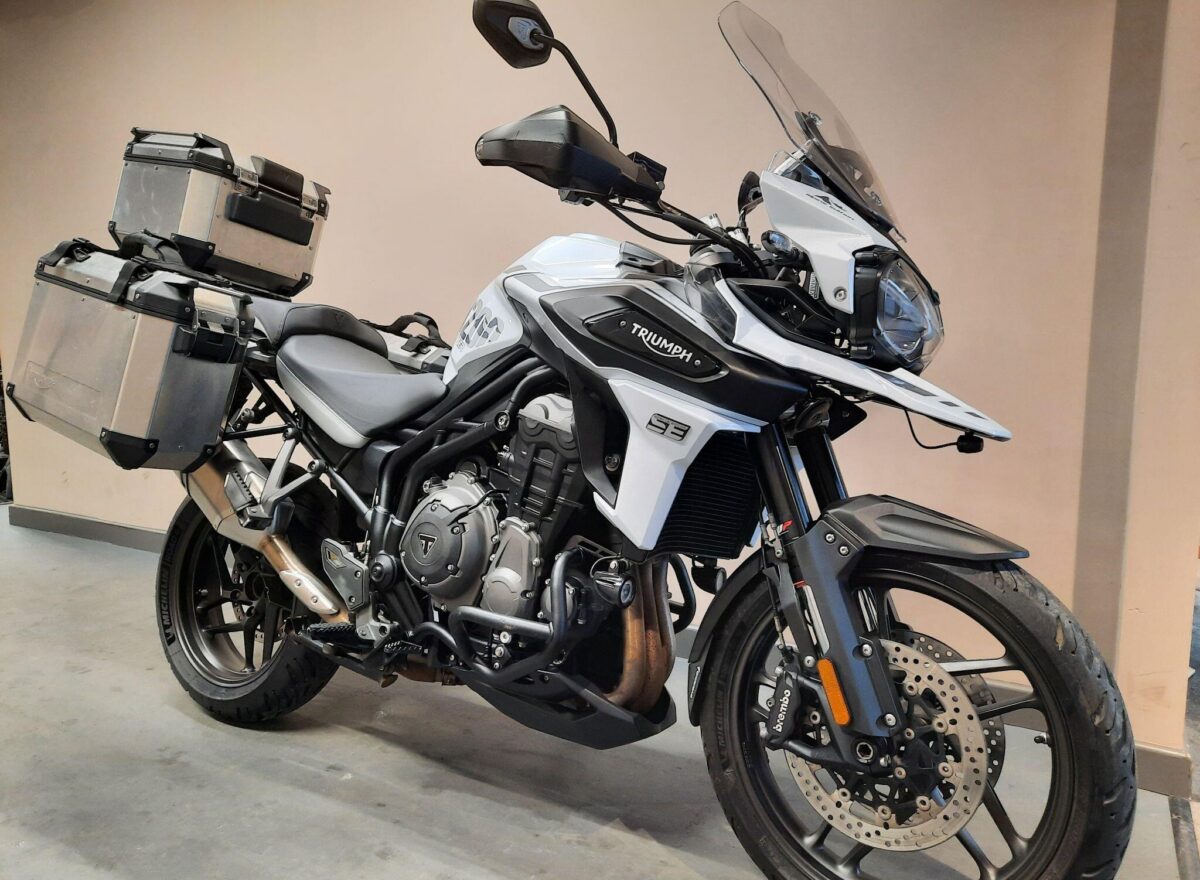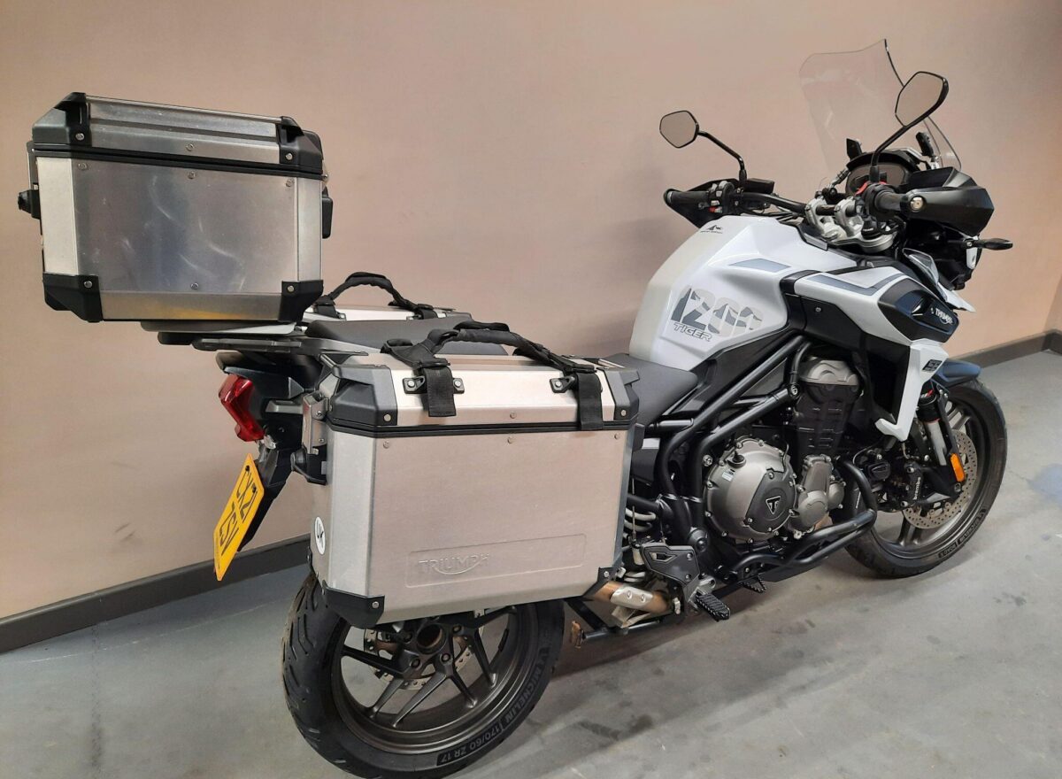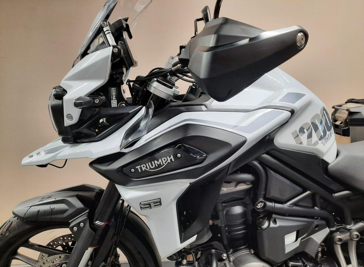 TRIUMPH TIGER 1200 ALPINE SE fitted with genuine Triumph aluminium top case and panniers. Special Edition Alpine model. Tiger 1200 Alpine Edition features all of the Tiger 1200 XR style and adventure capability, whilst bringing a higher standard of finish, including: Exclusive ‘Snowdonia White’ special edition paint scheme, ‘Alpine Edition’ graphics and Metallised ‘SE’ radiator badges. Based on the XRx model, the Tiger 1200 Alpine Edition adds even higher specification features with a Lightweight Arrow titanium silencer and Triumph Shift Assist for clutchless up- and down-shifts. Features… Shaft final drive. Full colour TFT display. Optimised Cornering ABS and Traction Control. 4 rider modes (Rain, Road, Off-Road, Sport). All LED lighting. High specification Triumph Semi-Active Suspension (TSAS). Triumph Shift Assist. Keyless ignition. Cruise control. Hill Hold. Electrically adjustable touring screen. Ride-by-wire throttle. Heated grips. Hand Guards. Main Stand. Three power sockets including a handy USB socket under the seat. One owner UK bike in very good condition and with full service history. Comes complete with 1 smart remote key, 2 mechanical back up keys, owners manual and service book. Will be serviced and supplied with MOT and 3 months warranty. UK Nationwide Delivery and finance available. Part exchange welcome. Whatsapp 07930 475012 or CALL US NOW 01244 289977…