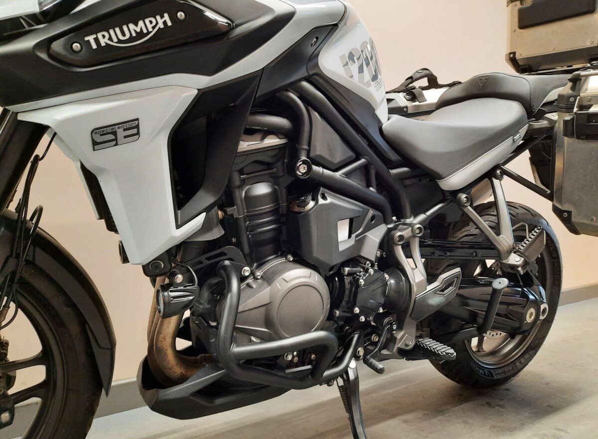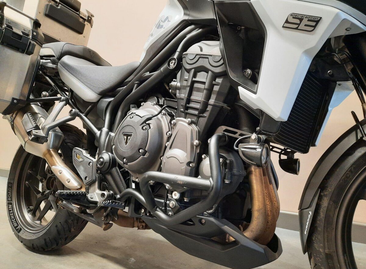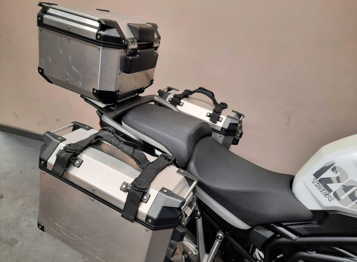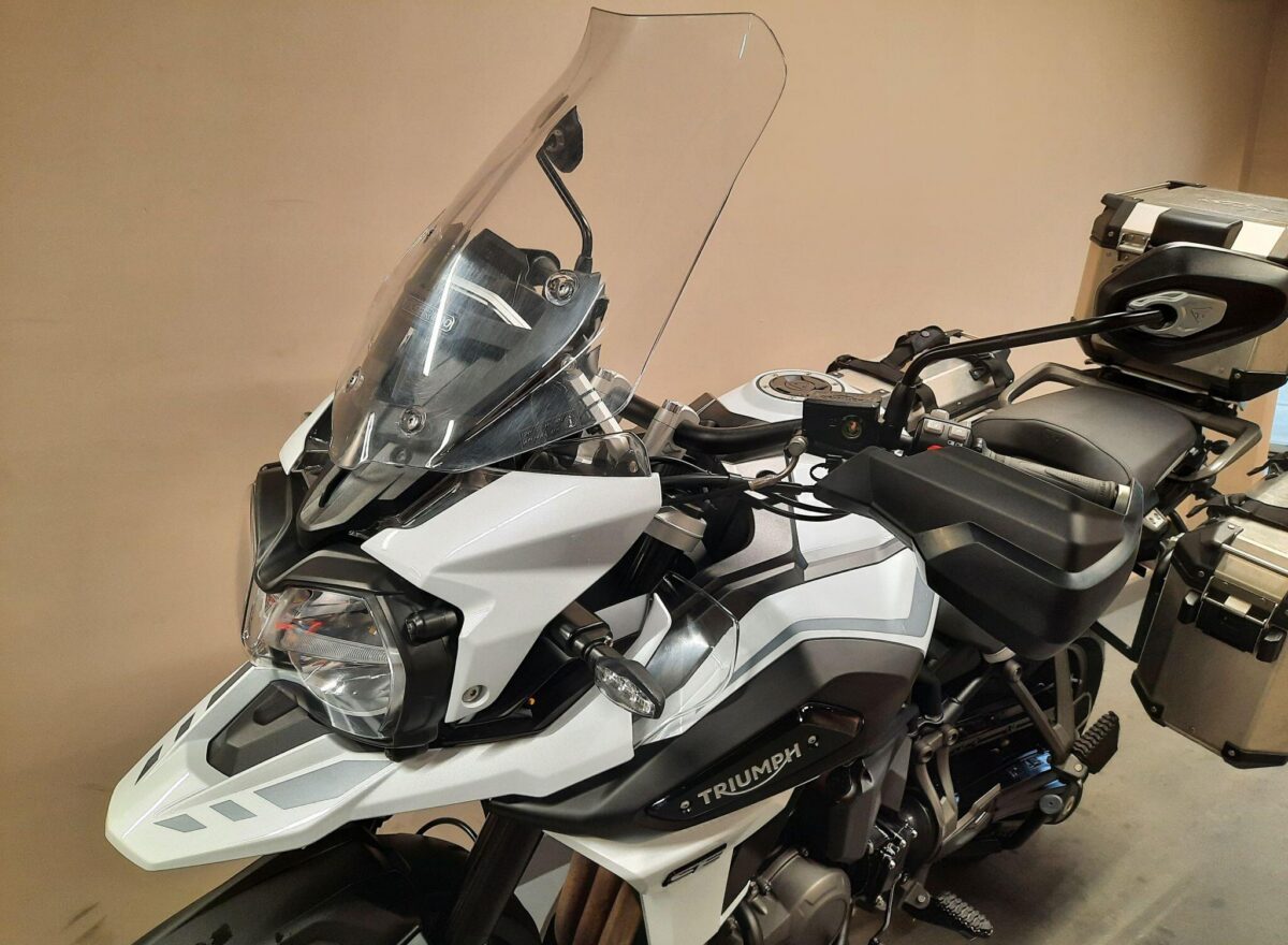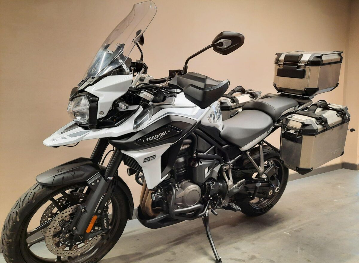 TRIUMPH TIGER 1200 ALPINE SE fitted with genuine Triumph aluminium top case and panniers. Special Edition Alpine model. Tiger 1200 Alpine Edition features all of the Tiger 1200 XR style and adventure capability, whilst bringing a higher standard of finish, including: Exclusive ‘Snowdonia White’ special edition paint scheme, ‘Alpine Edition’ graphics and Metallised ‘SE’ radiator badges. Based on the XRx model, the Tiger 1200 Alpine Edition adds even higher specification features with a Lightweight Arrow titanium silencer and Triumph Shift Assist for clutchless up- and down-shifts. Features… Shaft final drive. Full colour TFT display. Optimised Cornering ABS and Traction Control. 4 rider modes (Rain, Road, Off-Road, Sport). All LED lighting. High specification Triumph Semi-Active Suspension (TSAS). Triumph Shift Assist. Keyless ignition. Cruise control. Hill Hold. Electrically adjustable touring screen. Ride-by-wire throttle. Heated grips. Hand Guards. Main Stand. Three power sockets including a handy USB socket under the seat. One owner UK bike in very good condition and with full service history. Comes complete with 1 smart remote key, 2 mechanical back up keys, owners manual and service book. Will be serviced and supplied with MOT and 3 months warranty. UK Nationwide Delivery and finance available. Part exchange welcome. Whatsapp 07930 475012 or CALL US NOW 01244 289977…