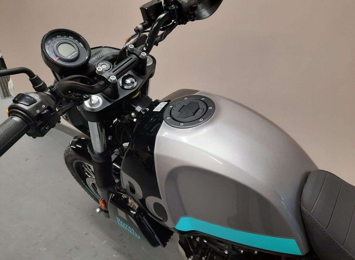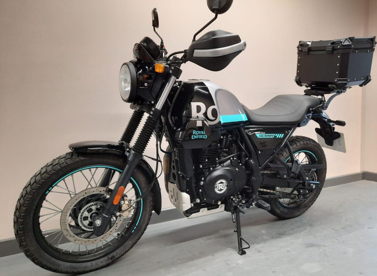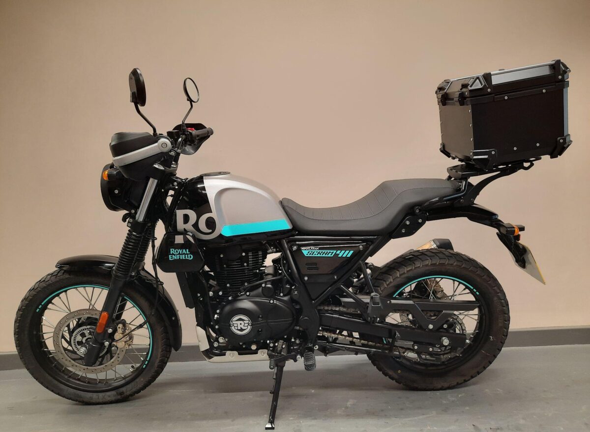 ROYAL ENFIELD SCRAM 411 E5 PREMIUM in Silver Spirit. Fitted with genuine RE hand guards, main stand, a front fender extender and rear luggage carrier with a Lasieyo black aluminium leather lined top case. Features… ABS, LCD display, alloy bash plate, oil cooler guard and fork gaiters. One owner UK bike in excellent condition and with full dealer service history. Comes with 2 sets of keys and owners manual. Will be serviced and supplied with 3 months warranty. UK Nationwide Delivery and finance available. Part exchange welcome. Whatsapp 07930 475012 or CALL US NOW 01244 289977