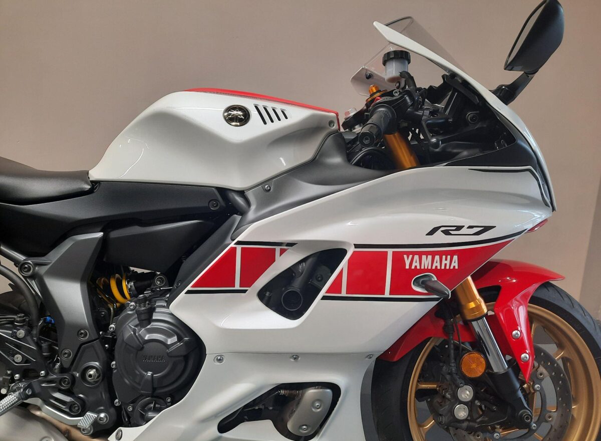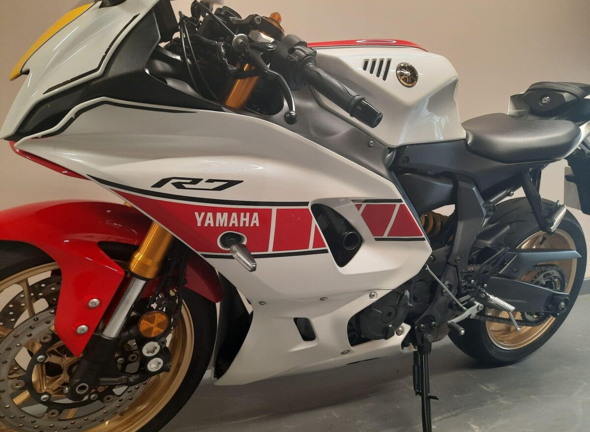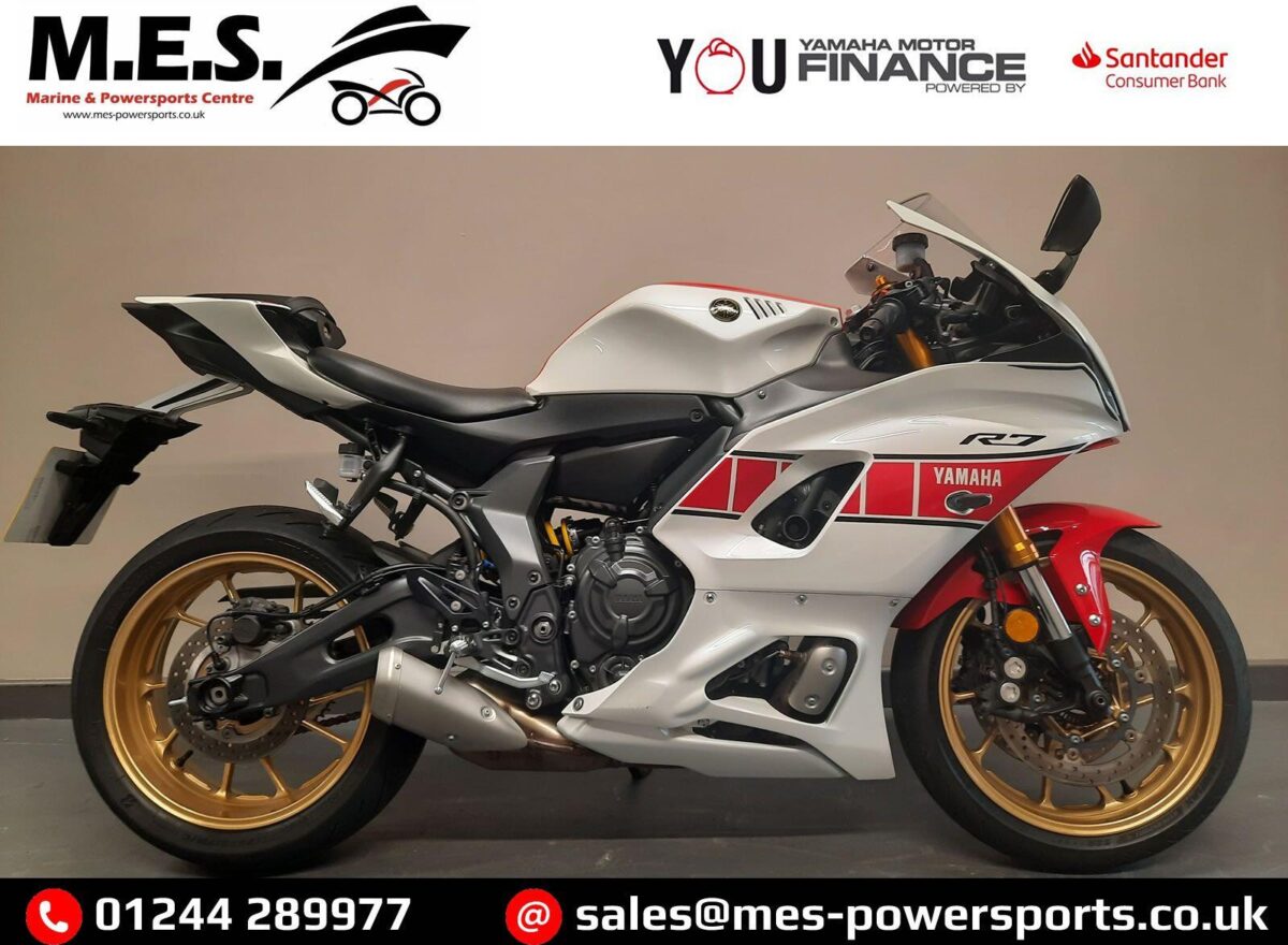 YAMAHA YZF-R7 WGP 60th Anniversary limited edition model. 689cc twin cylinder sports bike. Features… High-torque 689cc CP2 engine, Athletic design with R-Series DNA, Aerodynamic cowling and twin-eye face, A&S clutch for increased controllability, Lightweight frame fine-tune for chassis rigidity, Adjustable link-type rear shock, Fully-adjustable inverted 41 mm front forks, Sports, tucked-in riding position gives optimum agility, Radial-mount front brake callipers, Lightweight 10-spoke wheels. Low mileage 1 owner UK bike in excellent condition. Comes complete with all 3 keys (including red immobiliser master key) and owners manual. Will be serviced and supplied with MOT and 3 months warranty. UK Nationwide Delivery and finance available. Part exchange welcome. CALL US NOW 01244 289977…
