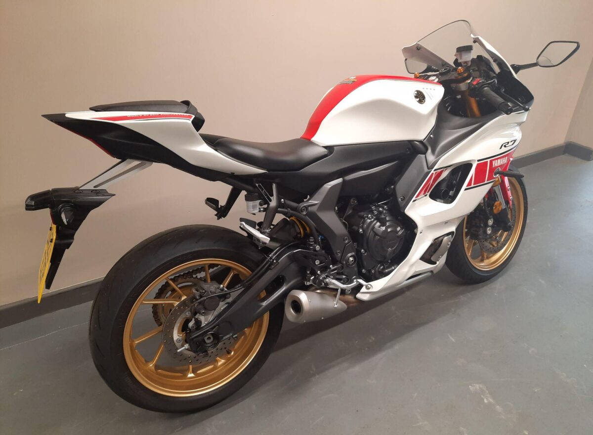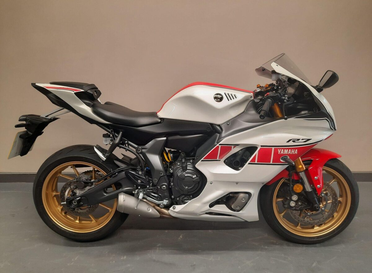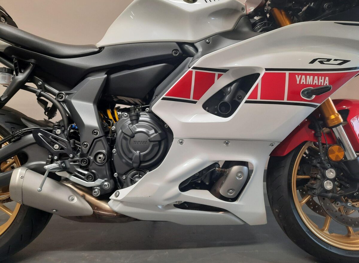 YAMAHA YZF-R7 WGP 60th Anniversary limited edition model. 689cc twin cylinder sports bike. Features… High-torque 689cc CP2 engine, Athletic design with R-Series DNA, Aerodynamic cowling and twin-eye face, A&S clutch for increased controllability, Lightweight frame fine-tune for chassis rigidity, Adjustable link-type rear shock, Fully-adjustable inverted 41 mm front forks, Sports, tucked-in riding position gives optimum agility, Radial-mount front brake callipers, Lightweight 10-spoke wheels. Low mileage 1 owner UK bike in excellent condition. Comes complete with all 3 keys (including red immobiliser master key) and owners manual. Will be serviced and supplied with MOT and 3 months warranty. UK Nationwide Delivery and finance available. Part exchange welcome. CALL US NOW 01244 289977…
