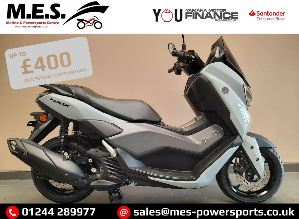 YAMAHA NMAX 125 TECH MAX. Choose up to £400 worth of FREE Genuine Accessories or Apparel for a limited time only. Available from stock in Ceramic Grey (pictured) or Dark Magma. 125cc learner legal automatic commuter scooter with 3 years Yamaha factory warranty and 2 years YOU Yamaha Roadside Assist. FREE Datatool Stealth S5 Tracker offer (fitting charge and subscription applies). Dynamic MAX-inspired design. Exclusive Tech MAX finish. Dual-eye projector headlights. LED taillight. 4.2-inch TFT dash. Bluetooth connectivity via Yamaha MyRide app for audio playback, answer incoming calls, view email and SMS notifications and navigation. 125cc EURO5+ engine. Start & Stop system. 13-inch wheels. Disc brakes with ABS. Underseat storage. Front storage pockets. USB-C charger. Smart Key keyless ignition. UK Nationwide Delivery and low rate HP or PCP Finance available. Part exchange welcome. Whatsapp 07930 475012 or CALL US NOW 01244 289977…
