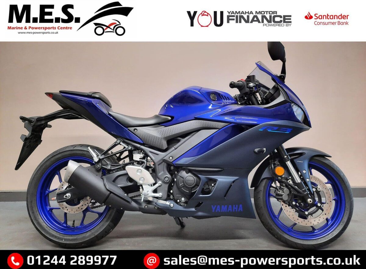 YAMAHA YZF-R3 in stock now. Choose from Black or Blue. New and unregistered, 0 miles, 3 years Yamaha factory warranty and 2 years YOU Yamaha Roadside Assist. Optional FREE Datatool Stealth S5 Tracker offer (fitting charge and subscription applies). Features… 35kW A2 licence compliant high revving 321cc EU5 engine, M1 inspired body, Aggressive R1-inspired face, Lightweight A2-license supersport bike, Slim and lightweight sports chassis, R1 inspired dual LED headlights, 37mm KYB inverted front forks, Low fuel tank and handlebar position, Lightweight wheels and supersport tyres, Powerful braking system with ABS, Balanced 50/50 weight distribution, Digital multi-function instruments. UK Nationwide Delivery and low rate HP or PCP Finance available. Part exchange welcome. Whatsapp 07930 475012 or CALL US NOW 01244 289977…