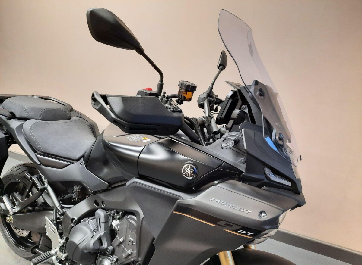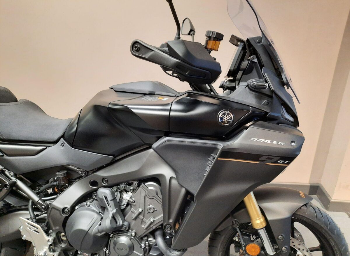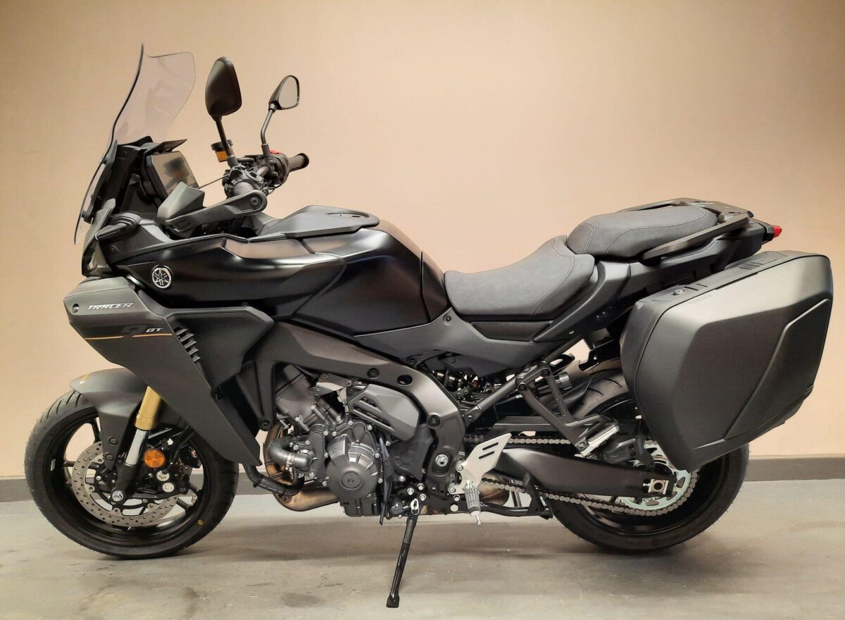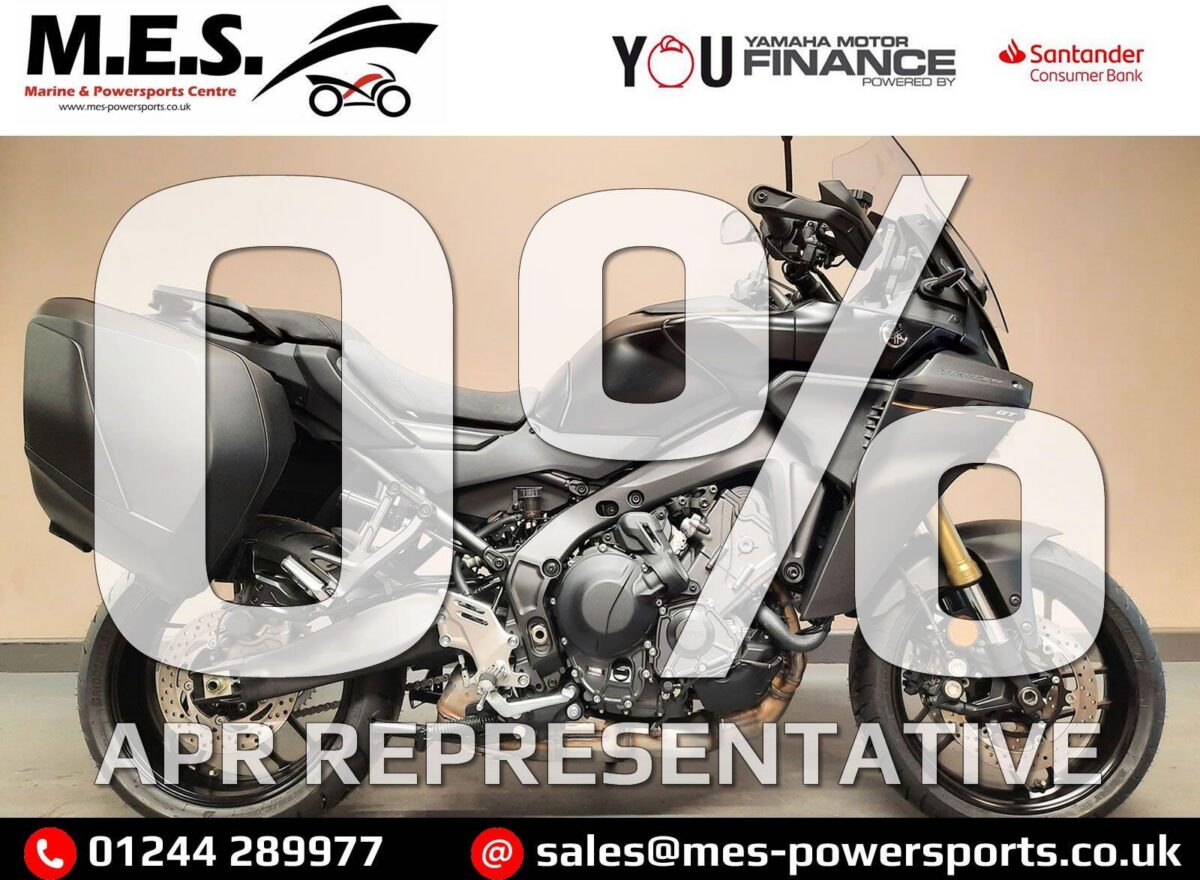 YAMAHA TRACER 9 GT Y-AMT Automatic gearbox model. NOW WITH LOW RATE 0% APR HP or 4.9% APR PCP FINANCE AND FREE DELIVERY. In stock now. Choose from Tech Black or Ceramic Ice. New unregistered 0 miles UK bike with 3 years Yamaha factory warranty and 2 years YOU Yamaha Roadside Assist. Optional FREE Datatool Stealth S5 Tracker offer (fitting charge and subscription applies). Yamaha Automated Manual Transmission (Y-AMT) gives you the choice of finger operated manual shift (MT) or a two-mode fully automatic transmission (AT). Two automatic riding modes, D mode delivers a softer gear shift experience and D+ mode for more sporty and aggressive gear shifting later in the rev range. Features… genuine colour matched panniers. Latest 890cc three-cylinder four valve DOHC liquid-cooled EU5+ CP3 engine, Six axis IMU with lean sensitive rider aids. Smart Key keyless ignition system. New 7” full colour TFT screen with Bluetooth smart phone connectivity via the Yamaha MyRide app for audio playback, phone calls, weather updates and turn by turn navigation. Cruise Control. Speed Limiter. Vehicle Hold Control. Electronically adjustable screen height. Heated Grips. Adjustable semi-active electronic suspension KYB Actimatic Damper System). Switchable Stability Control. Customisable riding experience via Yamaha Ride Control (YRC) allowing you to select engine power characteristics and the level of electronic intervention to suit your preferences and road conditions. Three integrated riding modes are programmed with factory settings to suit different situations: SPORT, STREET and RAIN; but you can also create two custom programmes to suit your individual preferences. 4 adjustable Power levels, 3 stage Traction Control, 3 stage Slide Control System, 3 stage Lift control and Brake Control. UK Nationwide Delivery and low rate HP or PCP Finance available. Part exchange welcome. Whatsapp 07930 475012 or CALL US NOW 01244 289977…